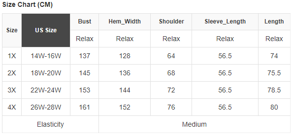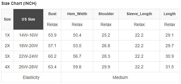 Specifically designed for plus sizes, ensuring a flattering and comfortable fit for all body types.
