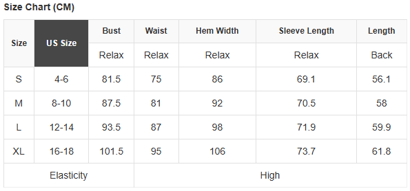1.There maybe 1-2 cm deviation in different sizes, locations and stretch of fabrics. Size chart is for reference only, there may be a little difference with what you get.
