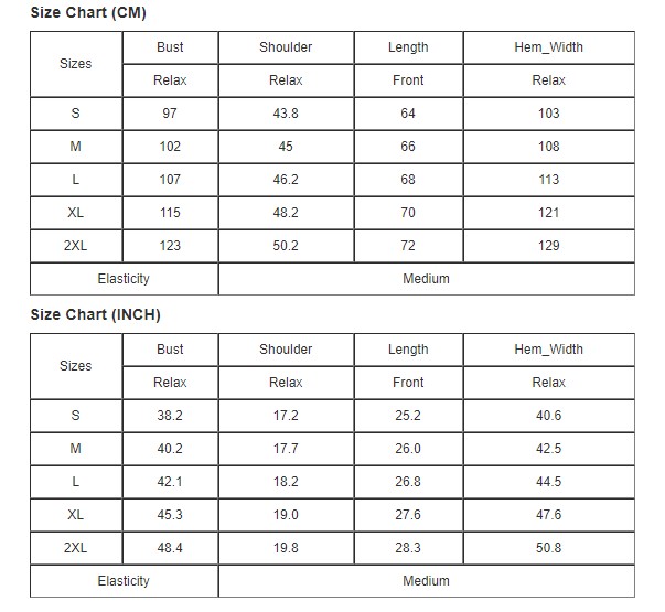 •Loose fit for most silhouettes